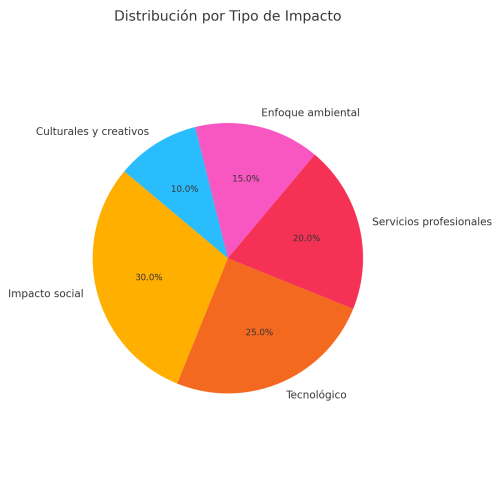 Proyectos centrados en salud, inclusión, educación, bienestar emocional y empleo digno. Esta es la categoría más representada, lo que confirma la orientación del ecosistema hacia el emprendimiento con propósito.