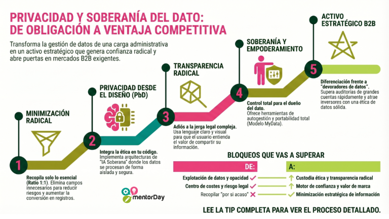 Privacidad y soberanía del dato en startup digital con panel de consentimiento control del usuario minimización de datos y cumplimiento europeo