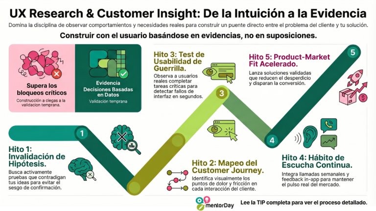 ux research y customer insight en startup digital con entrevistas de usuarios mapas de calor embudo de conversión métricas y análisis de experiencia cliente