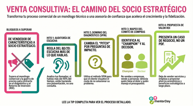 Venta consultiva en reunión b2b con diagnóstico de cliente preguntas spin análisis roi comité de compra y propuesta de valor estratégica