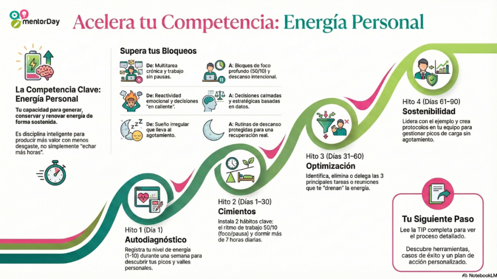 | Multitarea y fines de semana sin descanso. | Energía ≥7/10 y menos retrabajos. |