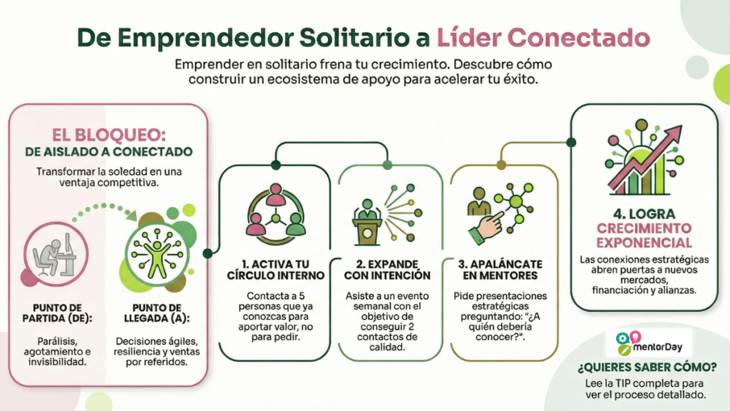 Si la respuesta es un «sí» rotundo, estás enfrentando uno de los bloqueos más peligrosos y silenciosos: la falta de capital social. Emprender no es un acto individual, aunque nos vendan la imagen del genio solitario. Si no tienes a quién llamar cuando hay crisis, o con quién celebrar cuando hay victorias, tu crecimiento está limitado por tus propias horas y tu propia energía.