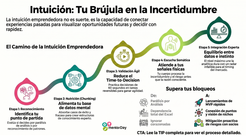 - Conclusión operativa: Si tu proyecto está en fase temprana creando soluciones donde no hay datos previos, la intuición emprendedora es de prioridad ALTA. Fomentarla será vital para tu supervivencia; analízalo demasiado y te hundirás por parálisis.