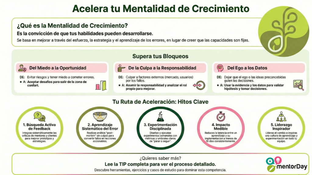 Comprende que la mentalidad de crecimiento no es “pensar en positivo”, sino transformar errores en aprendizaje operativo.