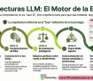 Diagrama conceptual de arquitecturas LLM en empresas con RAG, orquestación multi-agente y optimización de costes y latencia