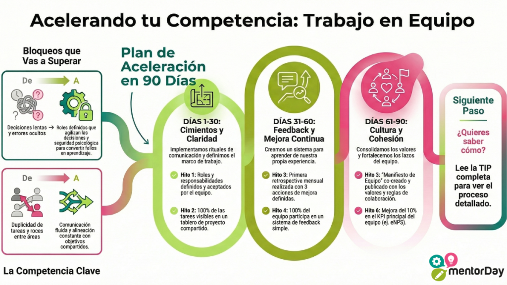31–60 días: Retrospectiva, sistema de feedback, formación en comunicación.